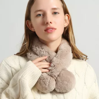 Women's Winter Real Rex Rabbit Fur Scarf with Pom Pom